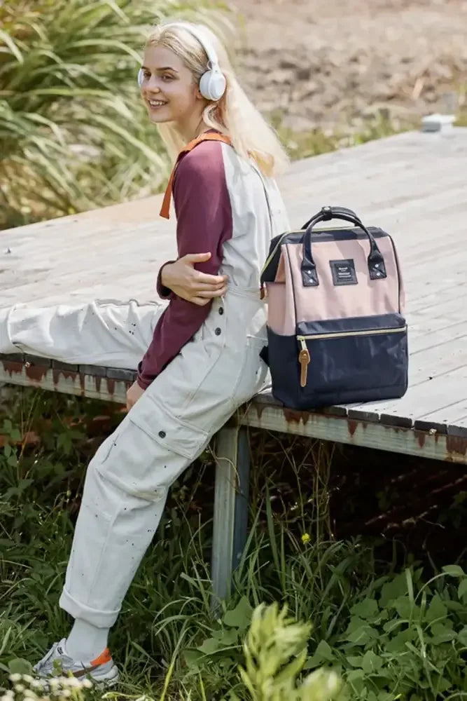 This Himawari Waterproof Canvas Backpack combines functionality with modern aesthetics, featuring a distinctive color-blocked design in soft pink and navy blue tones. Crafted from premium waterproof canvas material, it offers superior protection against weather elements while maintaining a lightweight profile. The spacious main compartment opens wide for easy access, complemented by strategically placed side pockets for organized storage of essentials. Reinforced with durable metal hardware and smooth-operating zippers, this backpack delivers long-lasting performance. The adjustable padded shoulder straps and top handle provide comfortable carrying options for daily commutes, travel, or outdoor activities. Its thoughtful design balances style and practicality, making it perfect for students, professionals, and adventure enthusiasts seeking a reliable and fashionable backpack solution.