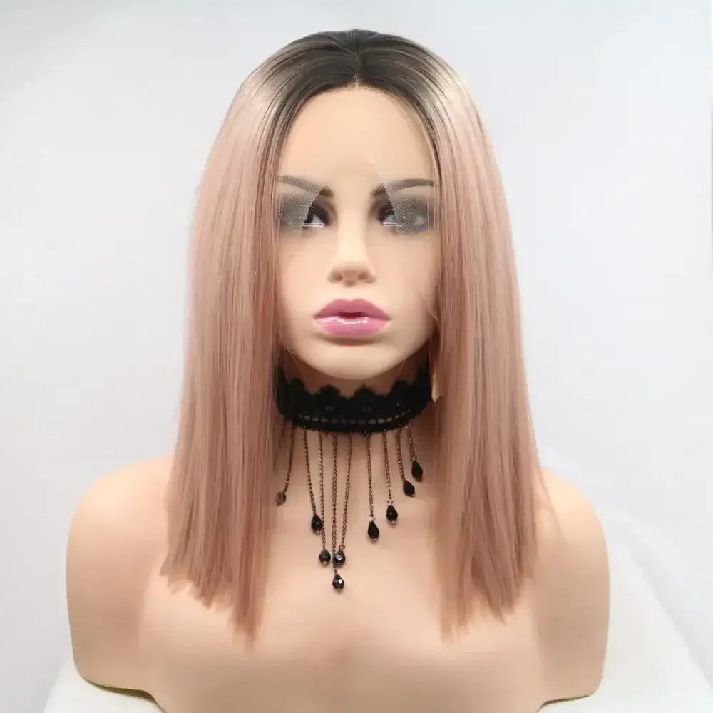 13*3" Lace Front Wigs Synthetic Mid-length Straight 12" 130% Density