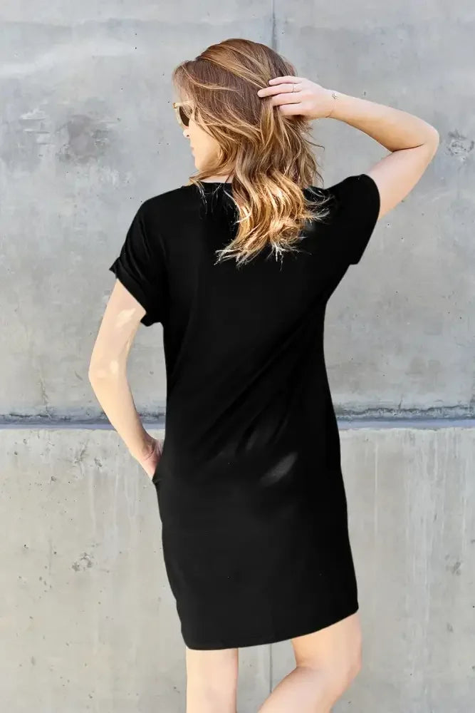 Basic Bae Bamboo Full Size Round Neck Short Sleeve Dress with Pockets