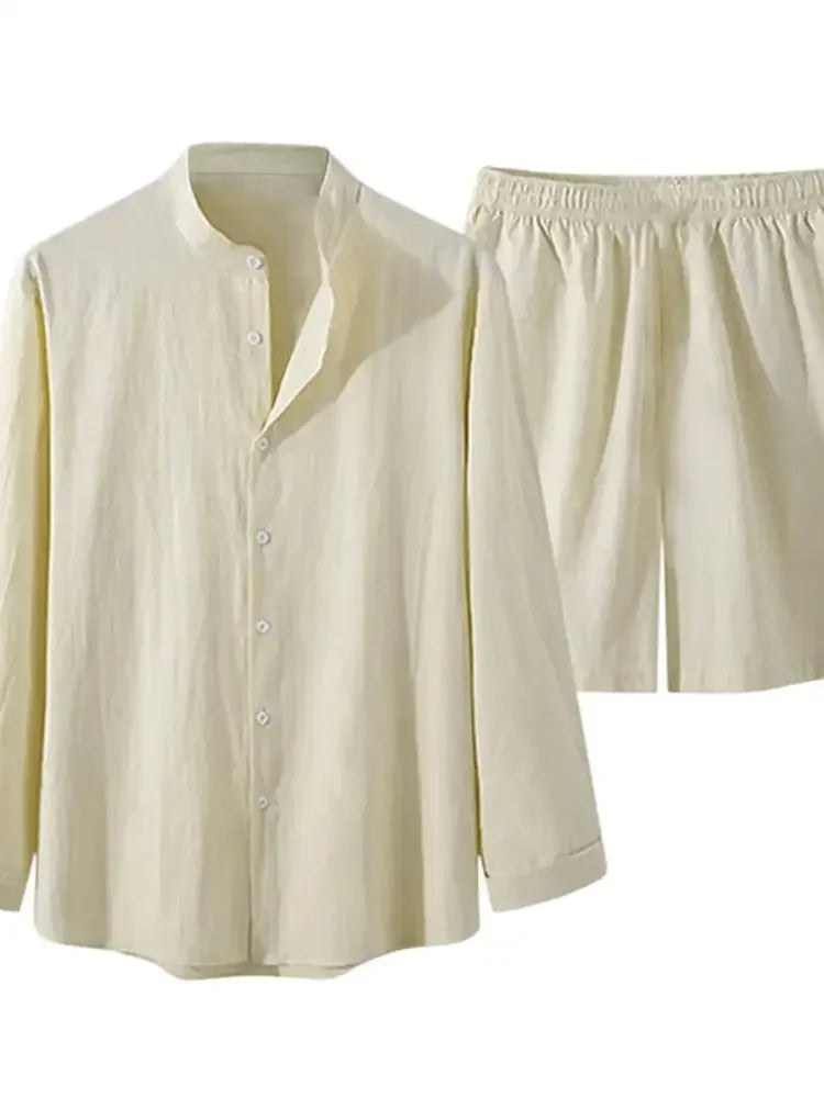 Men's Full Size Button Up Long Sleeve Shirt and Shorts Set Plus Size