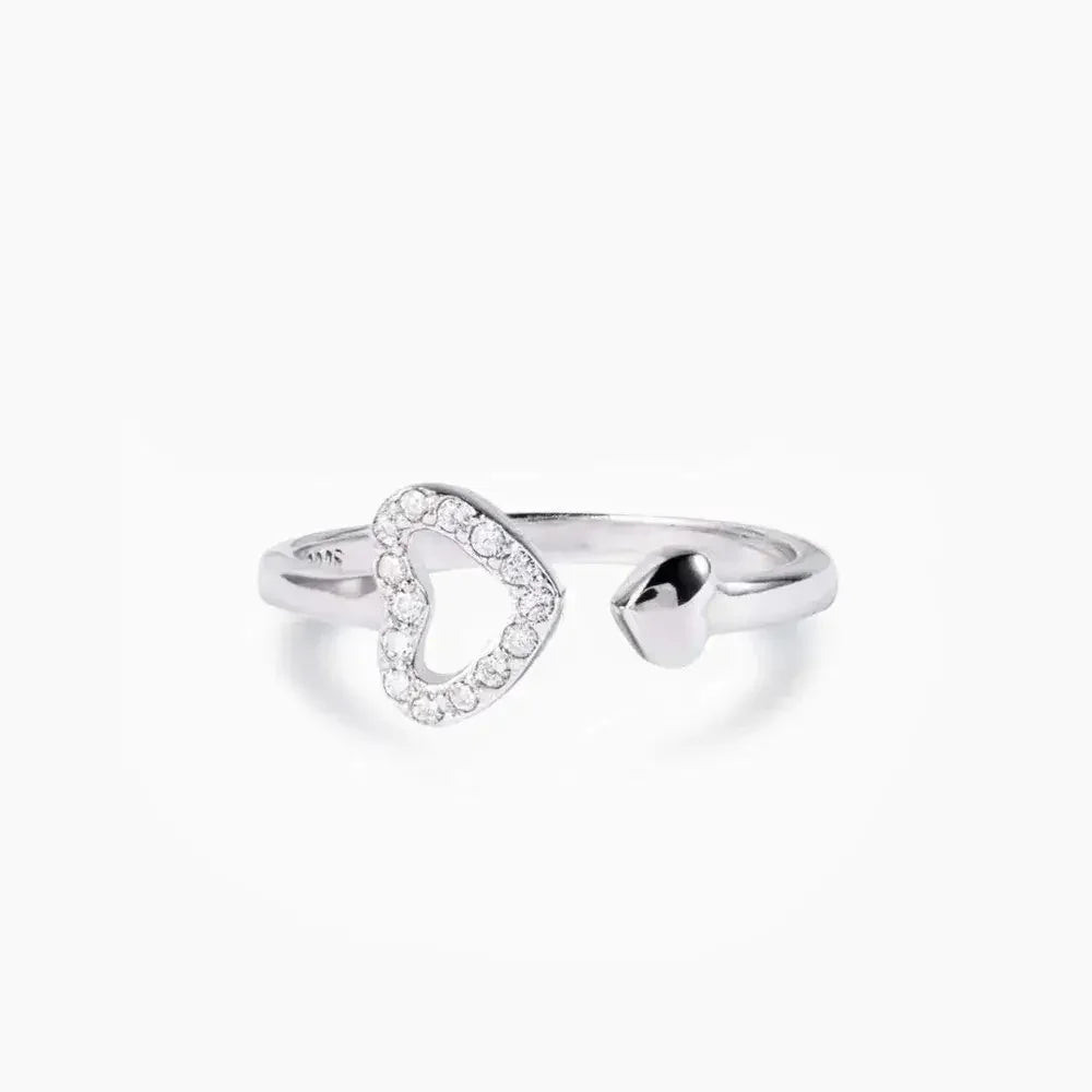 925 Sterling Silver Inlaid Zircon Heart Open Ring