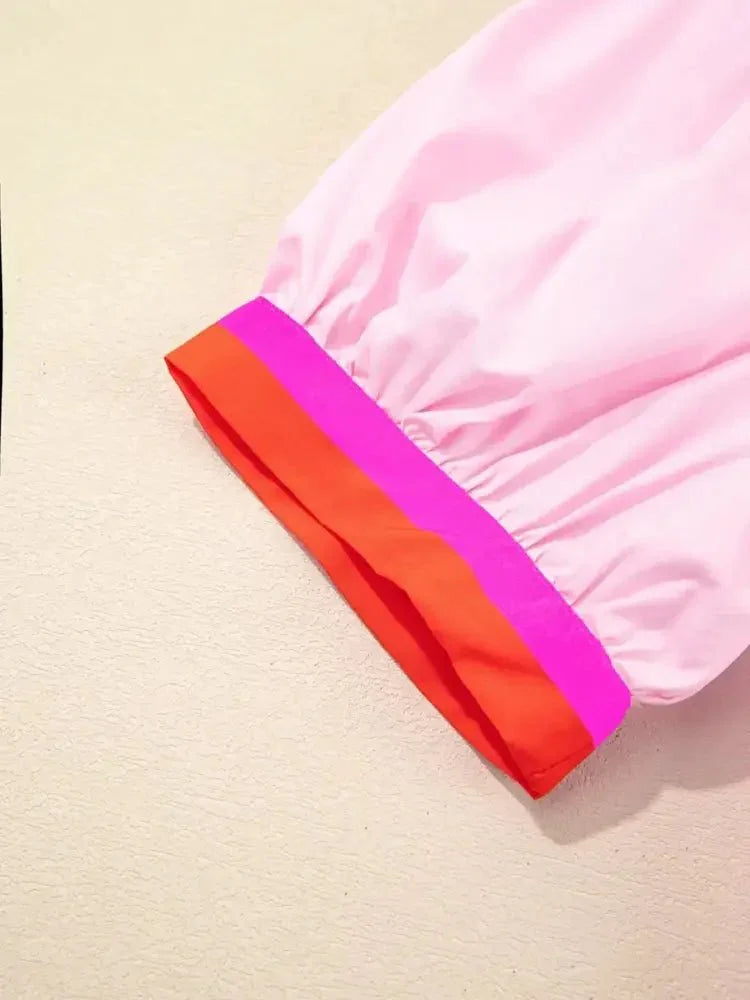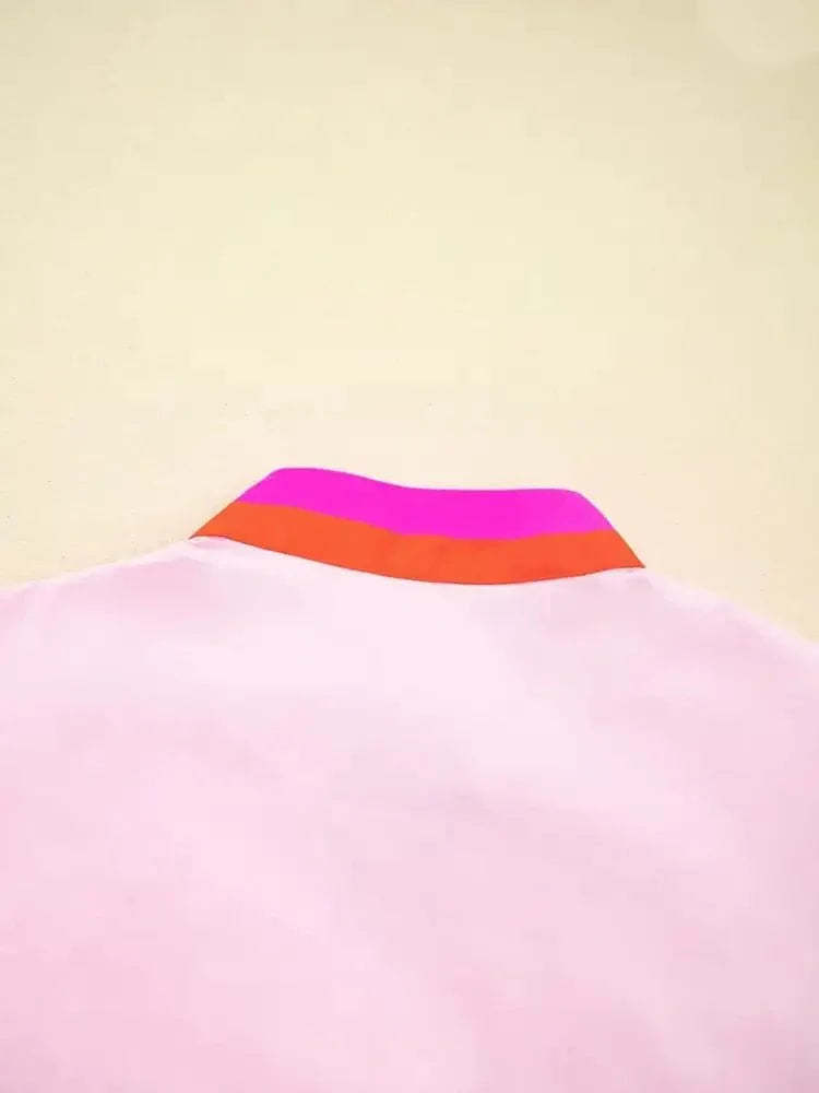 Contrast Trim Notched Short Sleeve Blouse