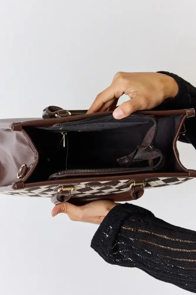 Introducing our trendy Argyle Pattern PU Leather Handbag! Crafted with high-quality materials, this stylish handbag features a unique argyle pattern design that adds a touch of sophistication to any outfit. The PU leather construction ensures durability and longevity, making it perfect for everyday use. With its spacious interior and multiple compartments, you can keep your belongings organized and easily accessible. Whether you're heading to work, a social gathering, or running errands, this handbag is the perfect accessory to elevate your style. Upgrade your wardrobe with our fashionable Argyle Pattern PU Leather Handbag today!