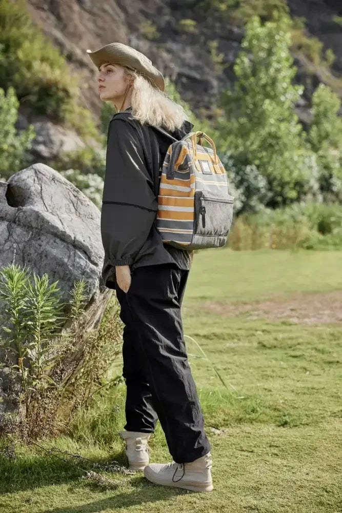 The Striped Waterproof Nylon Backpack Bag with Side Pockets is a fashionable and functional accessory for any outing. Its stylish striped design adds a touch of flair to your look while the waterproof nylon material keeps your belongings safe from the elements. The side pockets provide easy access to essentials like water bottles or keys, making it a versatile and practical choice for daily use.