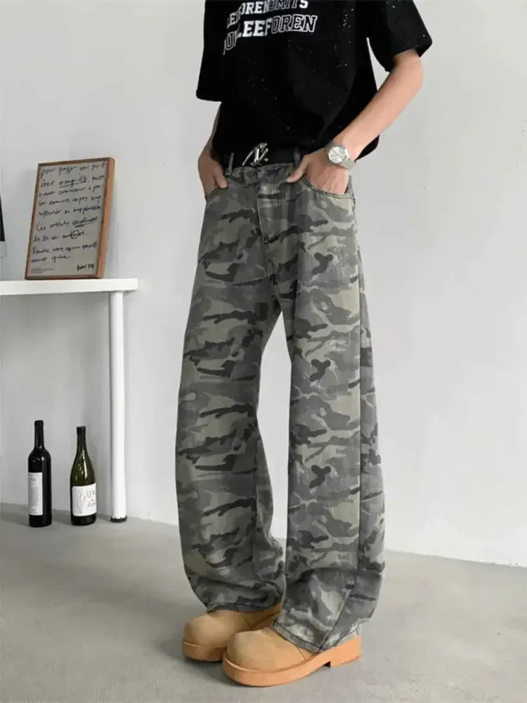 Men's Full Size Camouflage Wide-Leg Jeans Plus Size