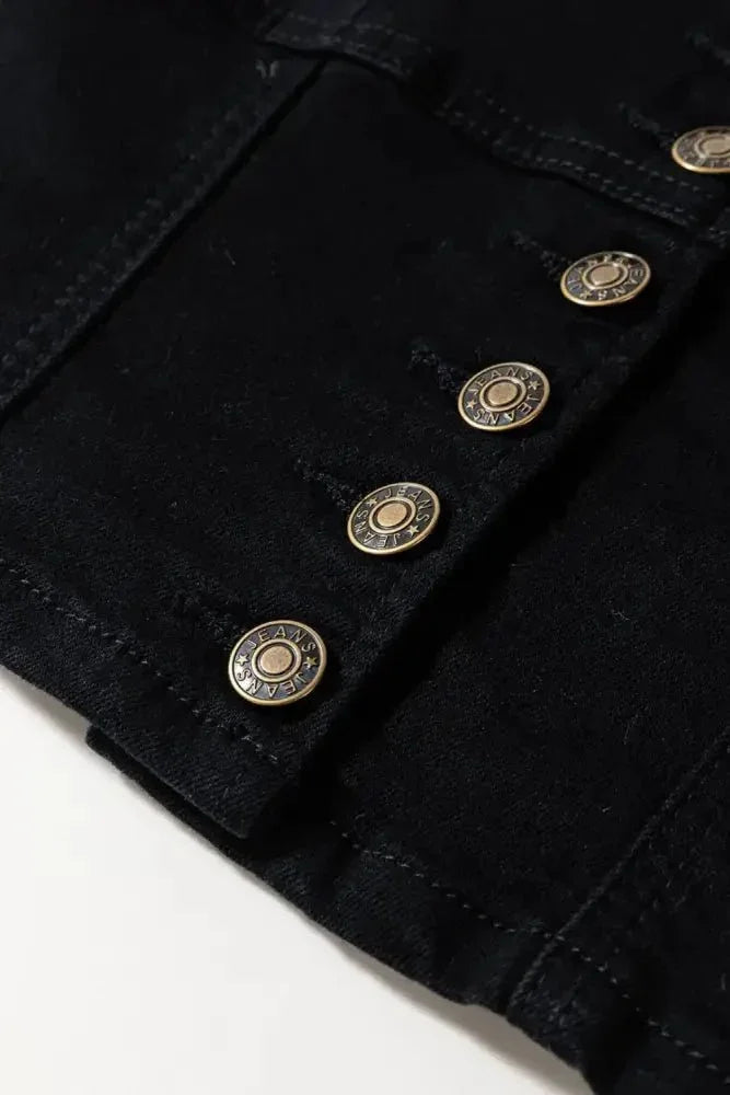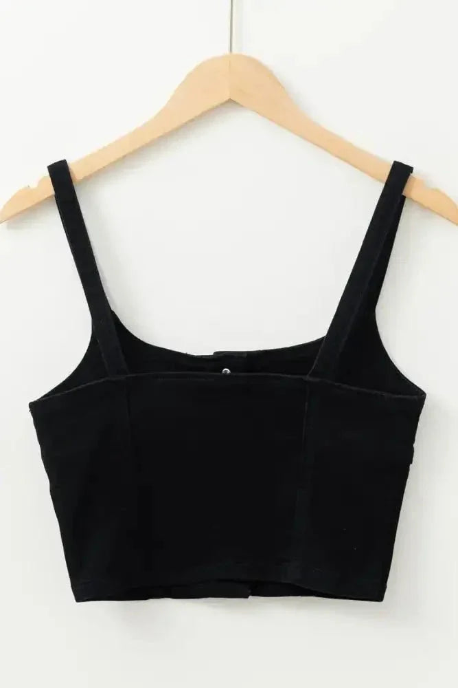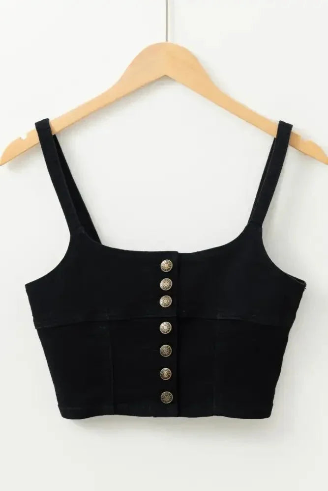 Acid Wash Buttoned Cropped Slim Denim Tank Top
