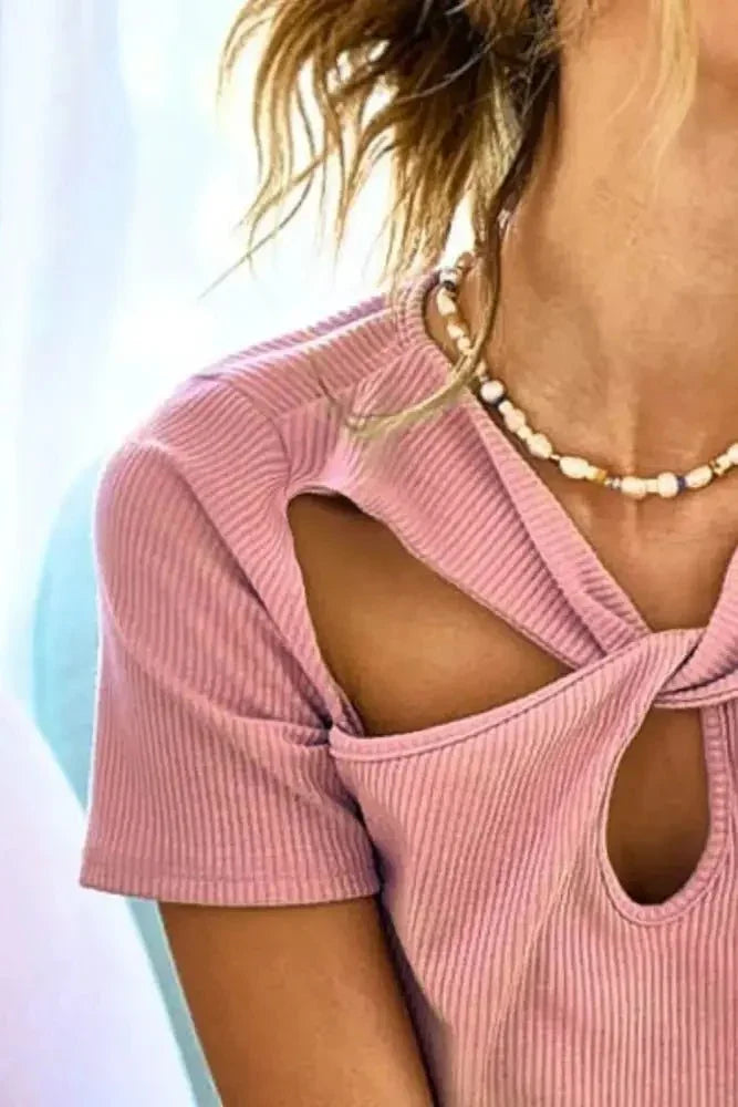 BiBi Rib Knit with Cut Out and Front Twist Detailed Top - Update AvenueT-ShirtsTrendsi10010054478126710010054478126744909b524f56423f958356e12599a417 - Max - OriginMAUVE