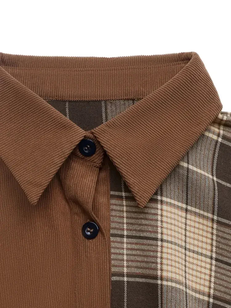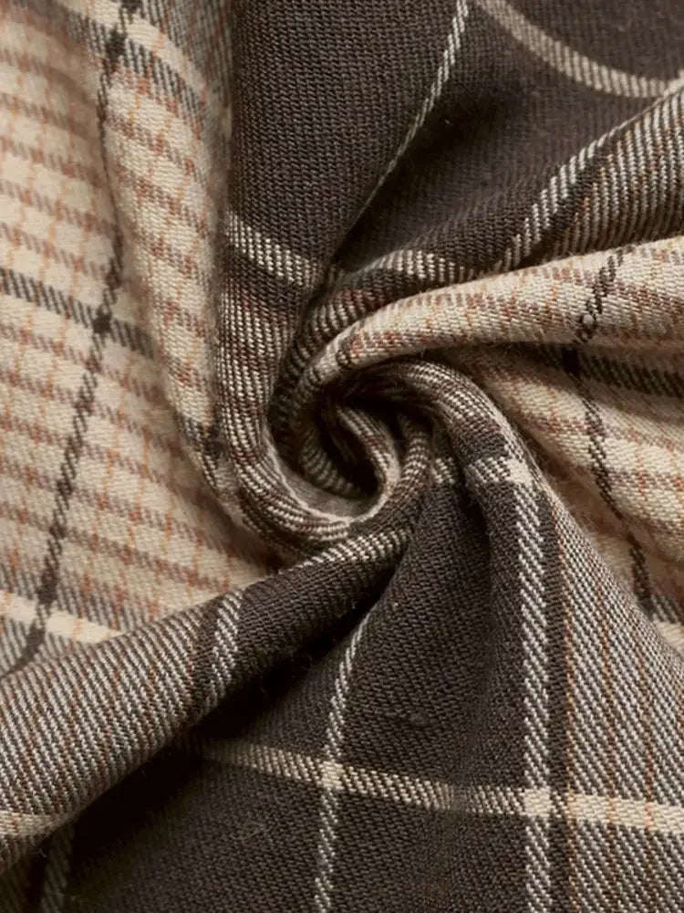 Button Front Plaid Long Sleeve Dress