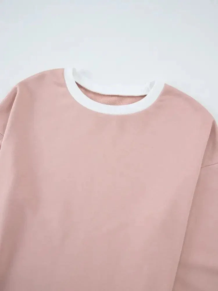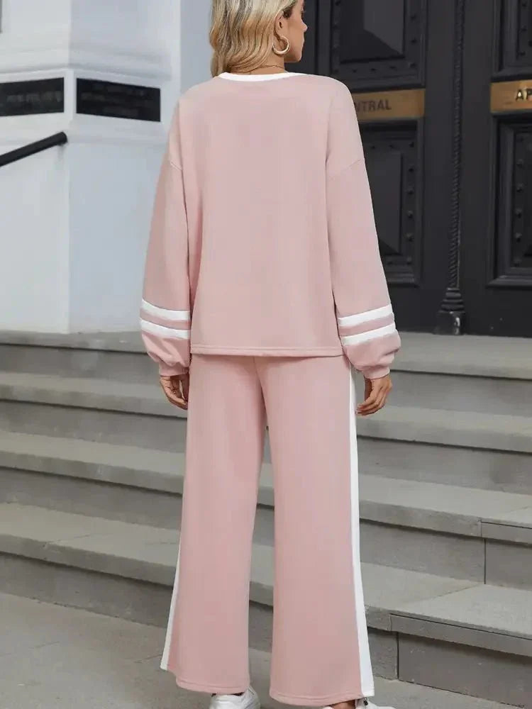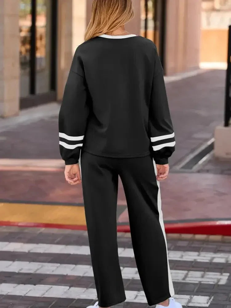 Contrast Trim Round Neck Top and Pants Set