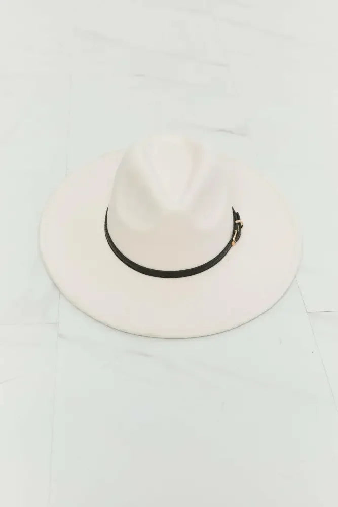 This trendy accessory is perfect for adding a touch of sophistication and elegance to any outfit. This hat boasts a soft and comfortable beige fabric that's perfect for year-round wear. The fedora shape adds a classic touch, while the thin black belt buckle with gold hardware detailing adds a modern and fashionable twist. The adjustable straps ensure a perfect fit for any head size, while the wide brim provides ample shade and protection from the sun.