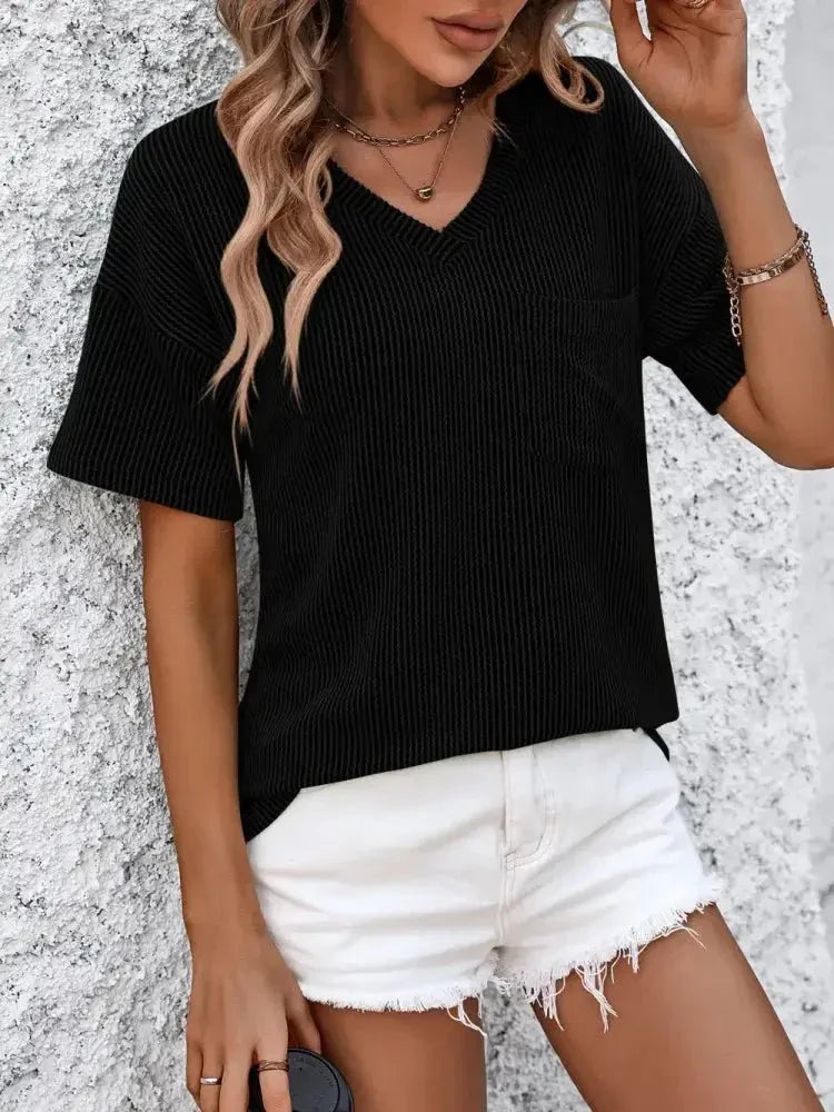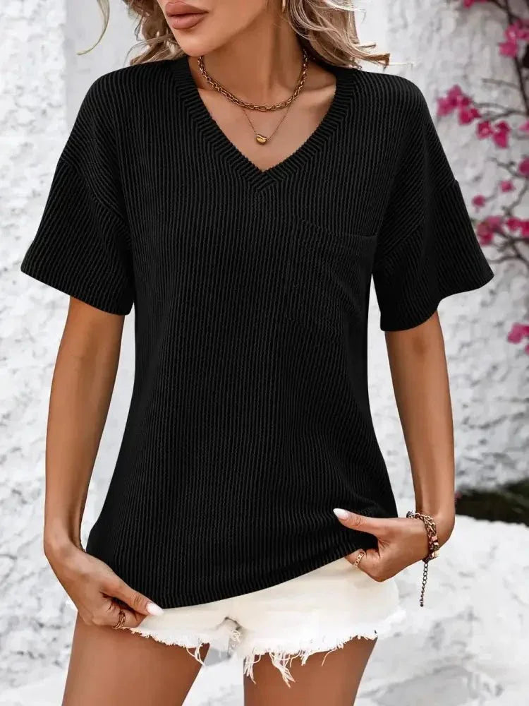 Mandy V-Neck Dropped Shoulder T-Shirt