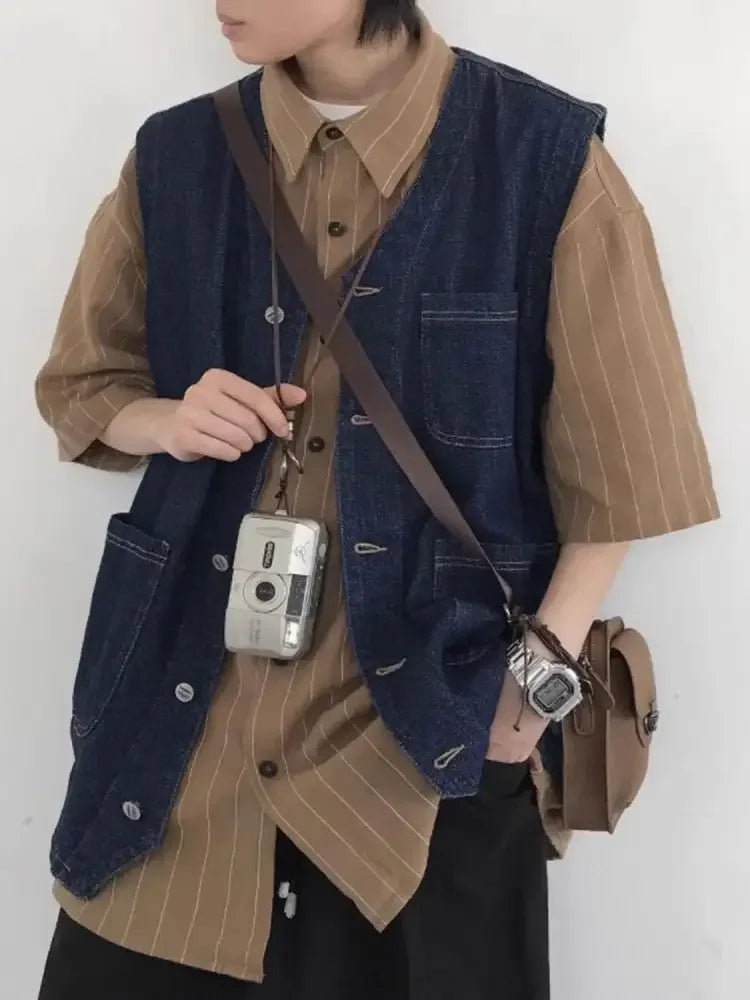 Men's Plus Size Button Up V-Neck Denim Vest