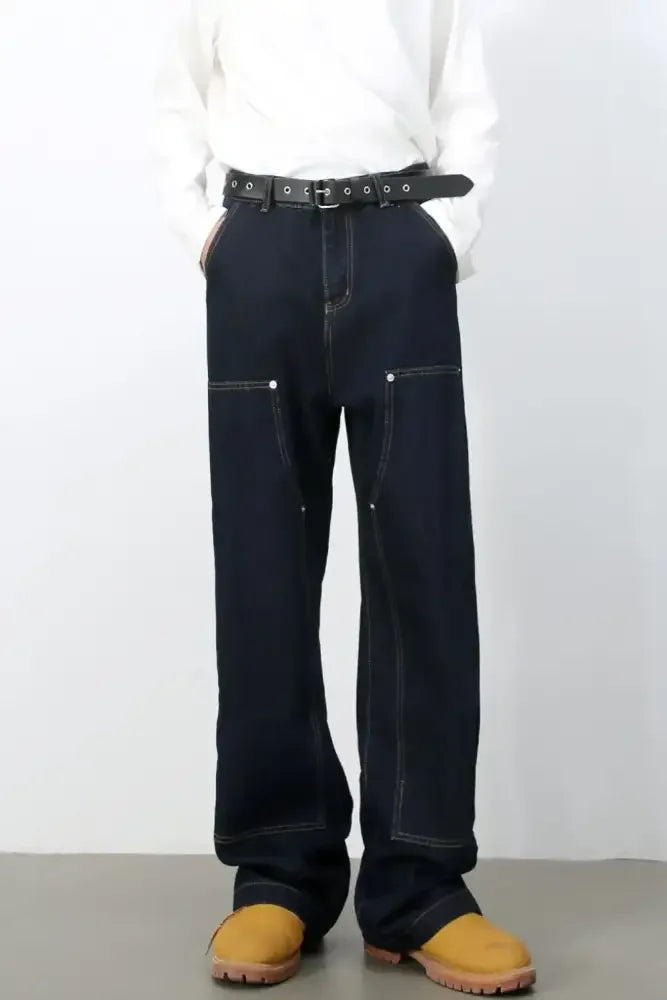 Men's Wide Straight Leg Jeans with Pockets