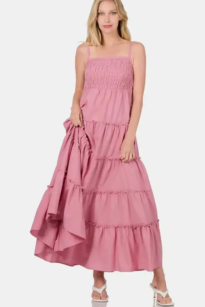 Zenana Woven Smocked Tiered Cami Maxi Dress