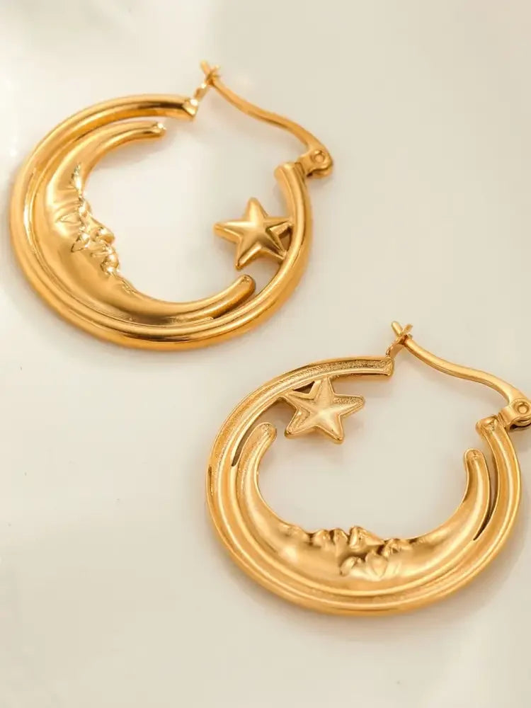 18K Gold-Plated Crescent Moon Star Hoop Earrings