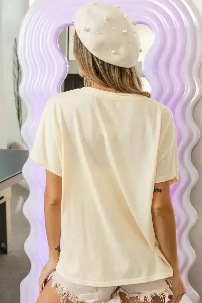 This top features intricate rhinestone bead embellishments on the short sleeves, adding a glamorous and eye-catching detail to the design. The rhinestones provide a touch of sparkle and elegance, making this top perfect for special occasions or nights out. Pair it with your favorite bottoms for a dazzling and stylish ensemble that will surely turn heads.