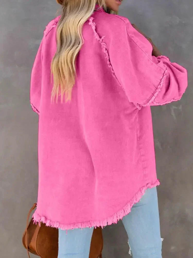 Button Down Raw Hem Denim Jacket - Update AvenueTrendsi1001009182364151001009182364151b54216fdc754db49d0ba6b612d75c9a - MaxPink