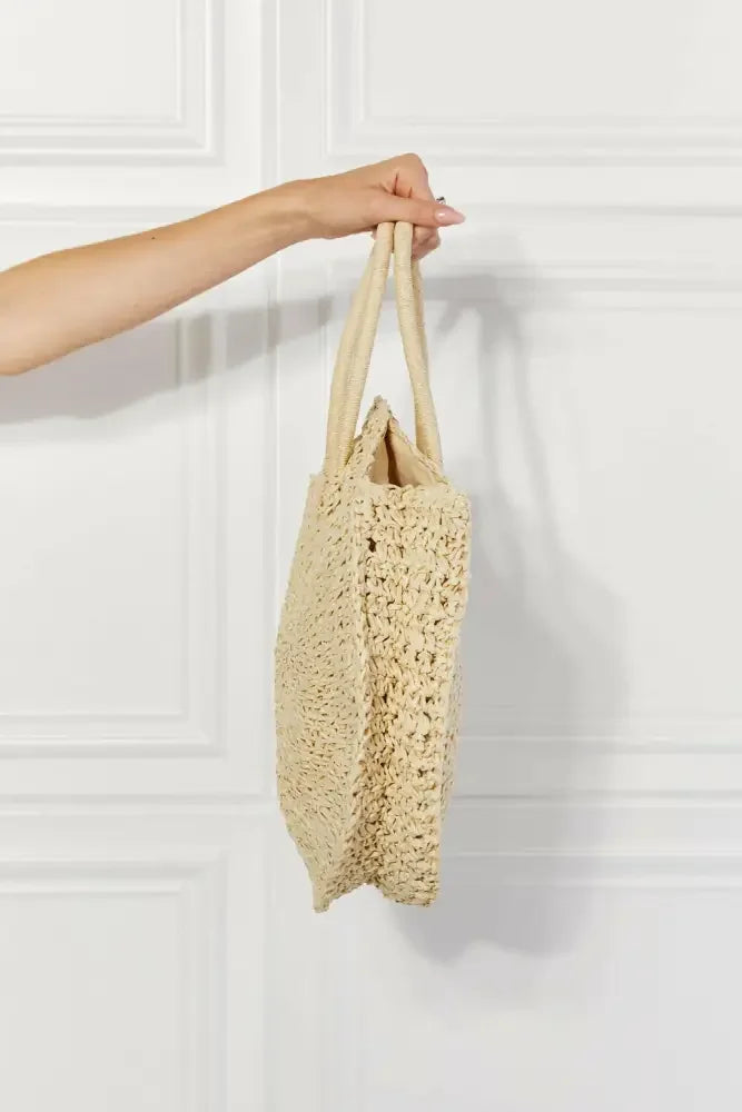 Justin Taylor Beach Date Straw Rattan Handbag in Ivory