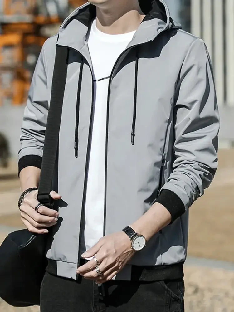 Men's Plus Size Drawstring Zip Up Hooded Jacket