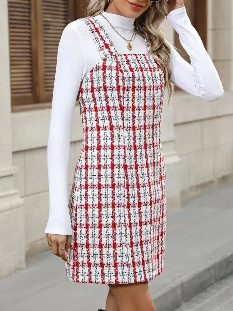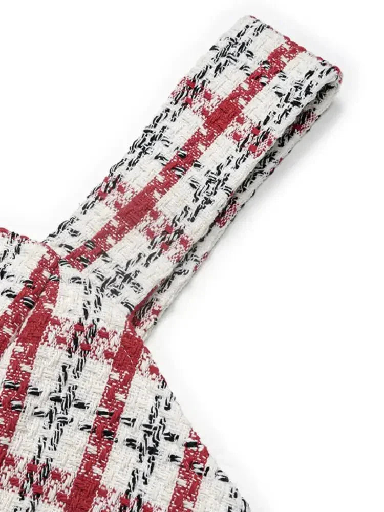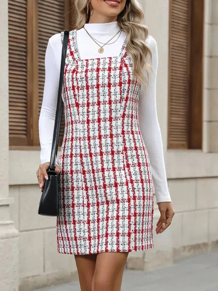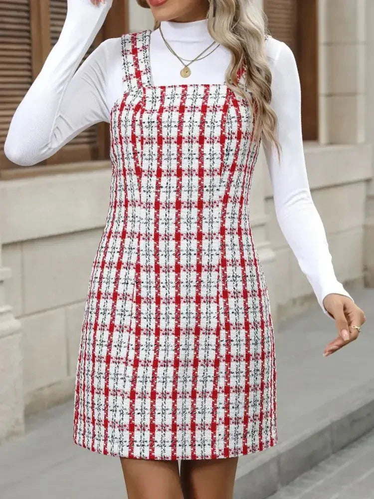 Plaid Tweed Square Neck Mini Dress
