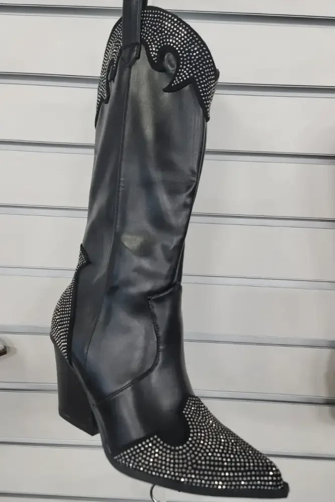Weeboo Chunky Heel Rhinestone Decor Western Boots