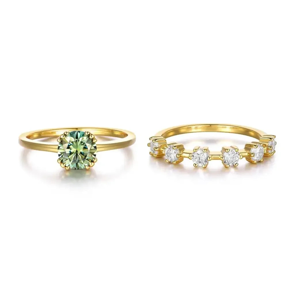 1 Carat Moissanite 925 Sterling Silver 2pcs Ring Set