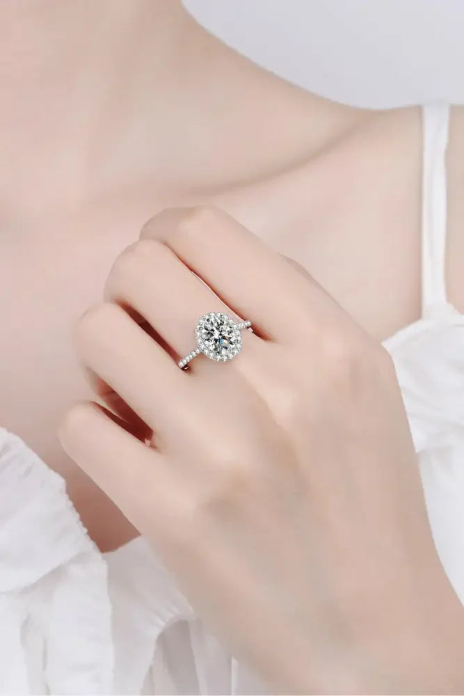 2 Carat Moissanite 925 Sterling Silver Halo Ring