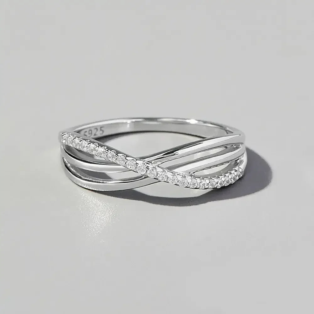 Crisscross Inlaid Zircon 925 Sterling Silver Ring