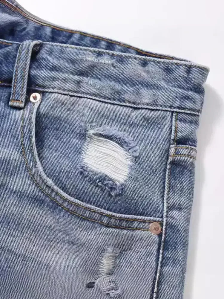 Men's Distressed Denim Bermuda Shorts