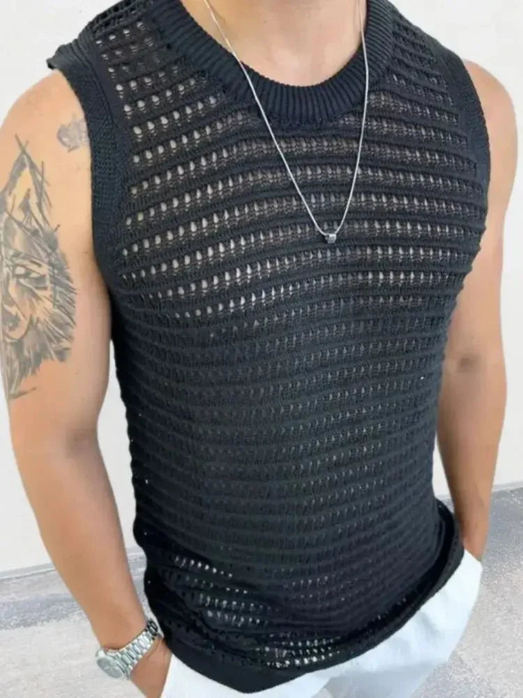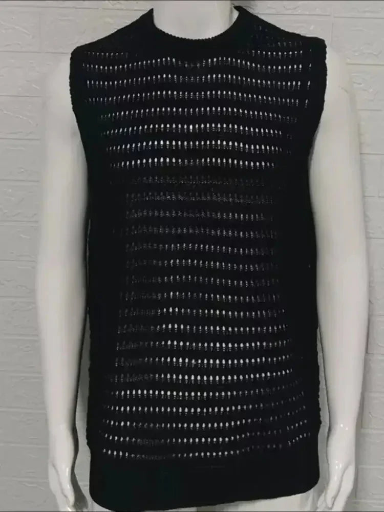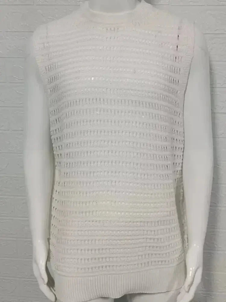 Men's Round Neck Hollow Out Sleeveless Knit Top
