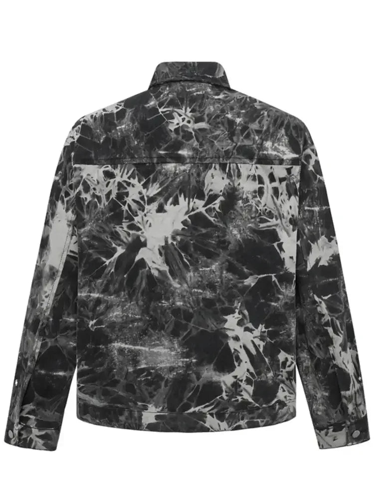 Men's Tie-Dye Button Up Long Sleeve Denim Jacket