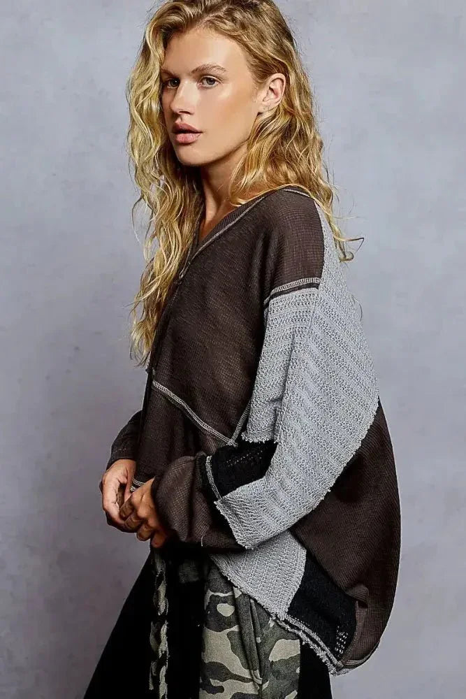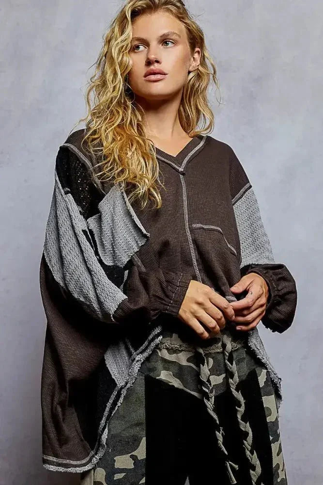POL High - Low Hem Contrast Stitching V - Neck Top - Update AvenueT-ShirtsTrendsi1001009847013331001009847013334d368014 - f16f - 45aa - bf9b - e732f34b26c5 - Max - OriginDark Gray