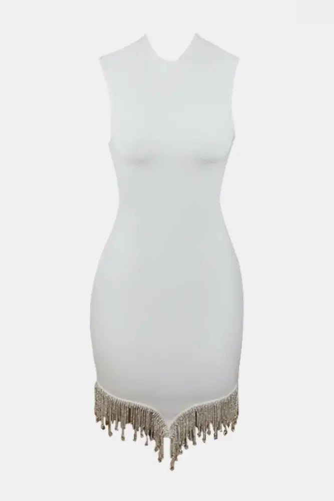 Rhinestone Tassel Hem Bodycon Dress