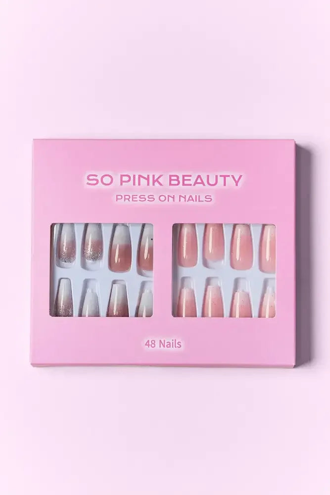 Introducing So Pink Beauty Press-on Nails Two Pack – a seamless blend of style and convenience. Elevate your nail game with two distinct designs per pack, ensuring versatility for any occasion. Crafted with precision, these nails effortlessly enhance your look. The set includes glue for easy application, taking only minutes to achieve a salon-worthy finish. Embrace the ease of glamour with So Pink Beauty Press-on Nails – where chic designs meet simplicity.
