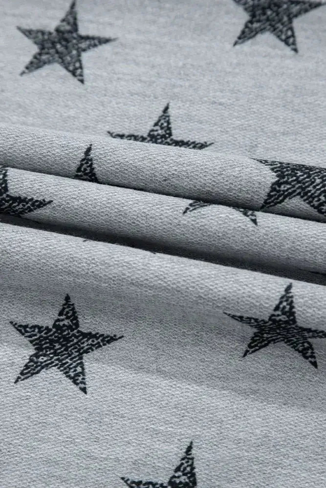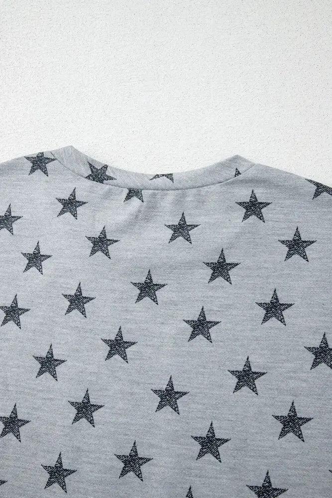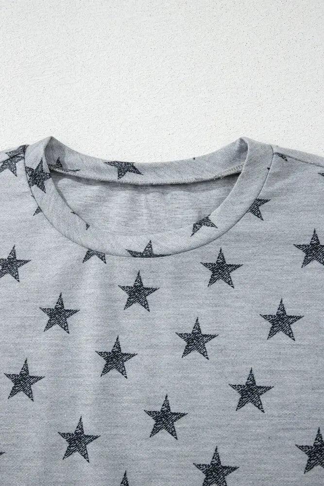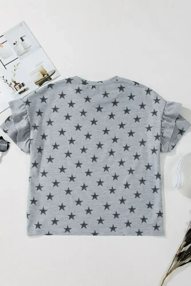 Star Print Tiered Ruffled Sleeve Crew Neck T Shirt