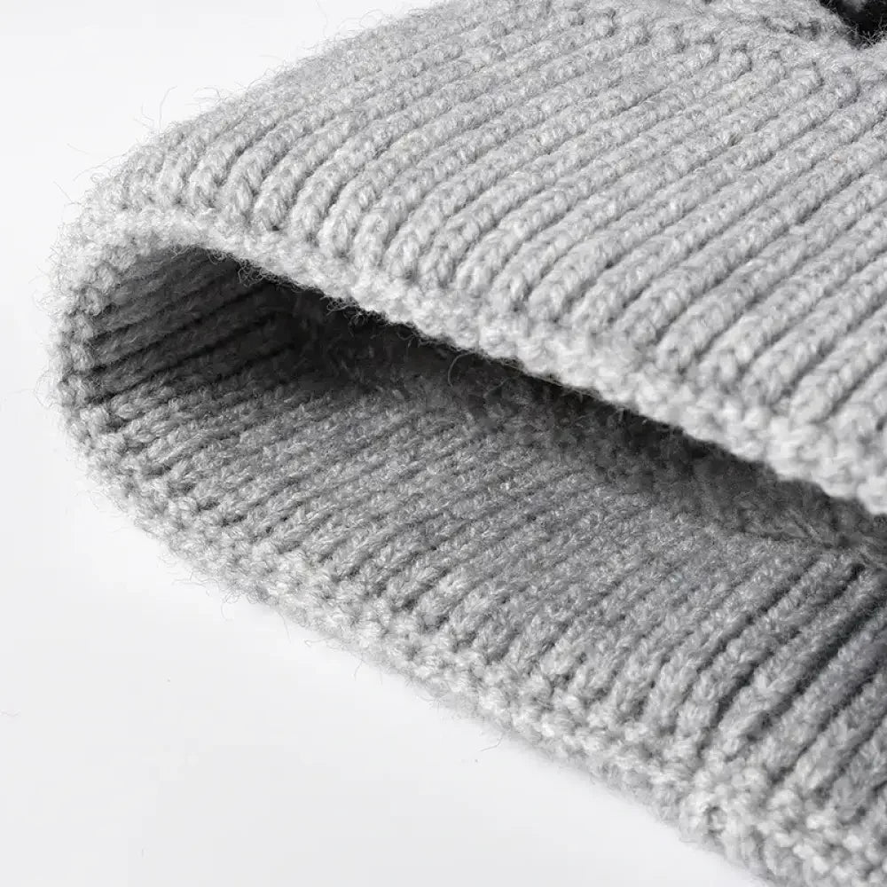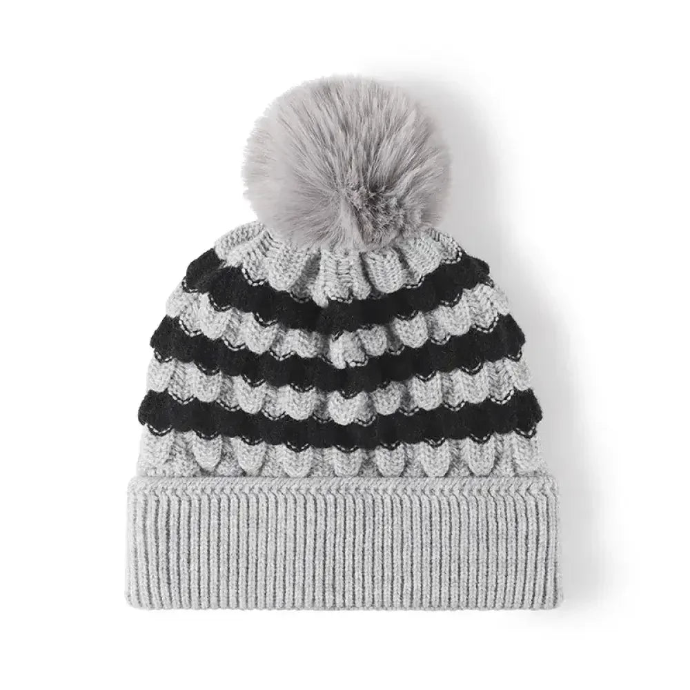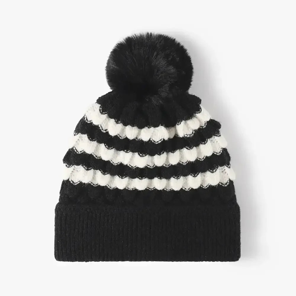 Striped Contrast Knit Hat with Pom-pom
