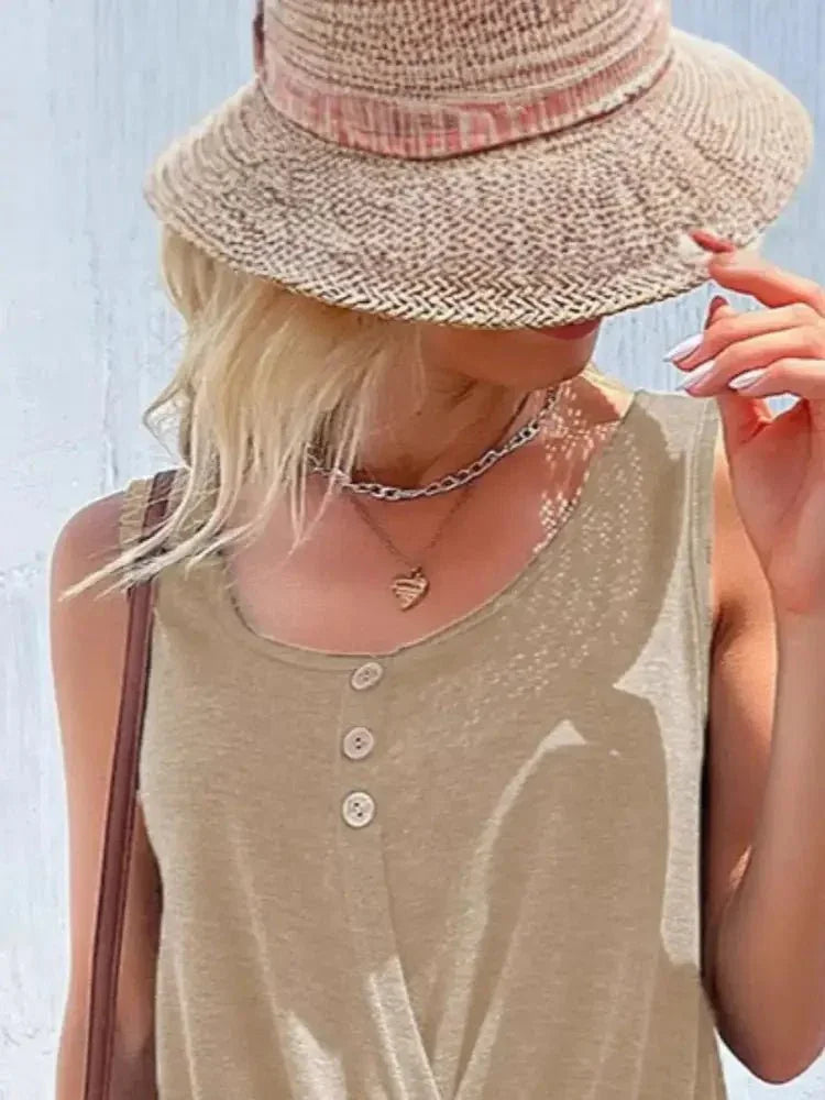 Full Size Twisted Hem Button Detail Tank Plus Size