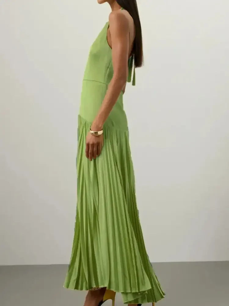 Pleated Halter Neck Maxi Dress