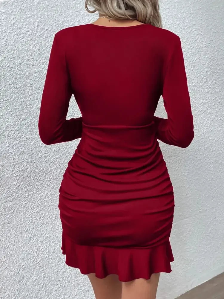 Ruffled Hem Long Sleeve Dress