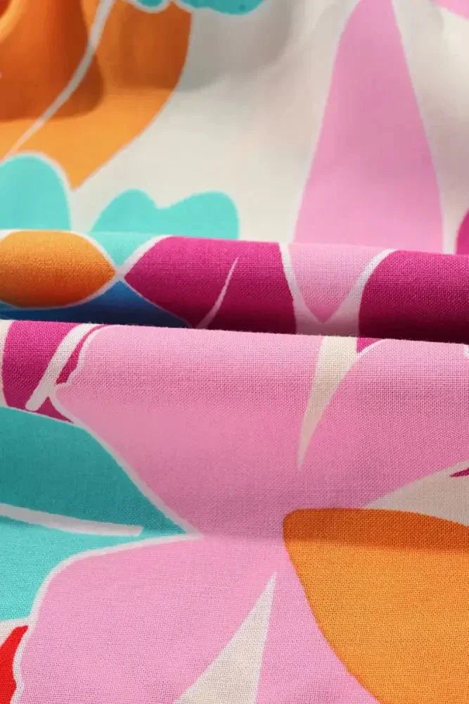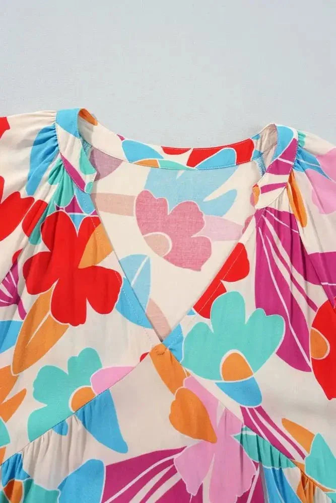 Floral Bubble Sleeve V Neck Tiered Ruffle Babydoll Dress