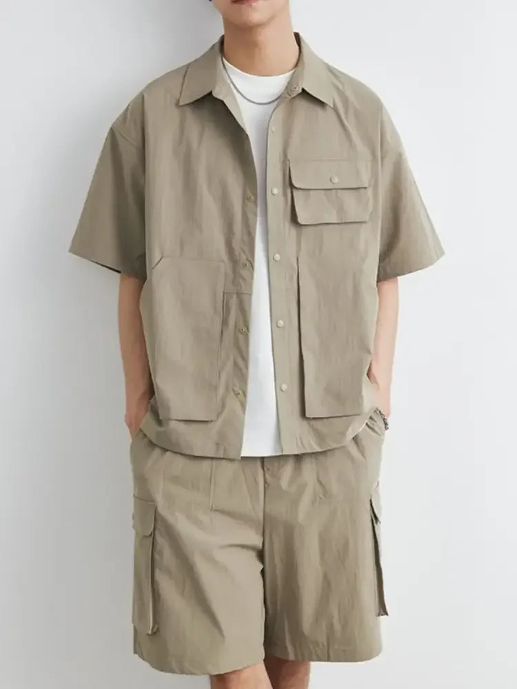 Men's Plus Size Button Up Short Sleeve Shirt and Shorts Set