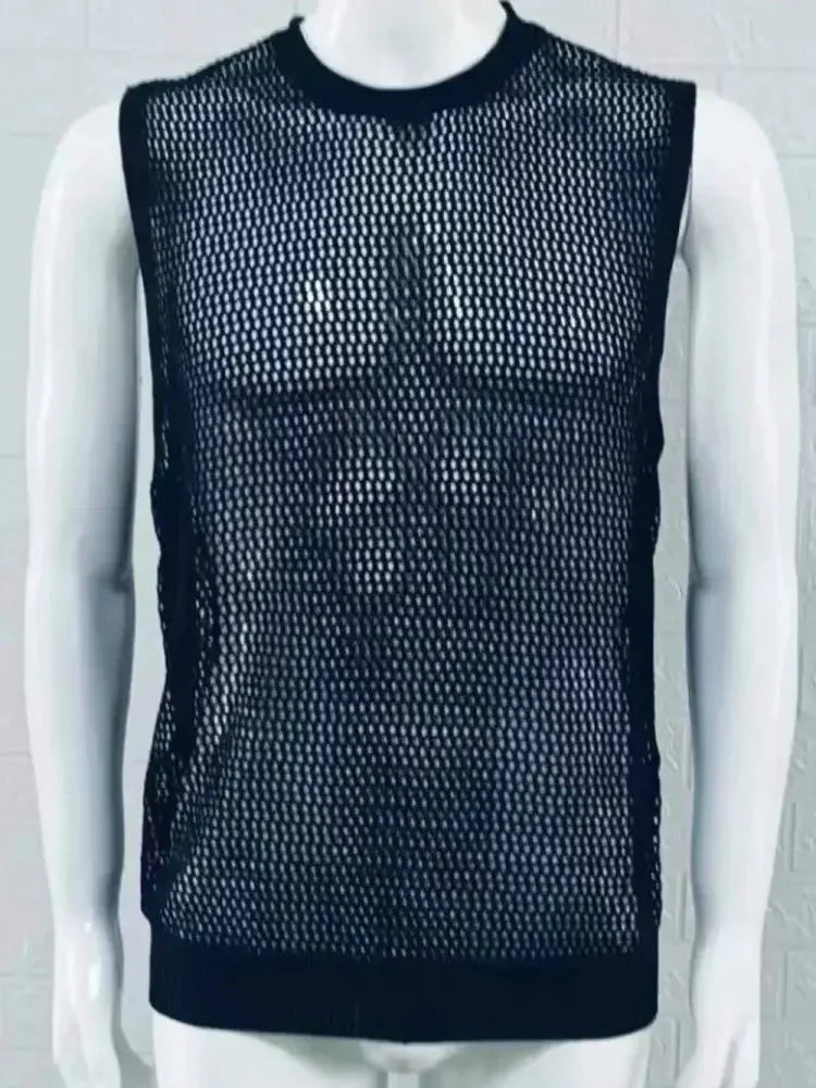 Men's Openwork Round Neck Sleeveless Knit Top
