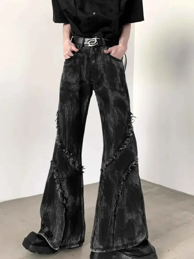 Men's Plus Size Raw Hem Wash Flare Jeans