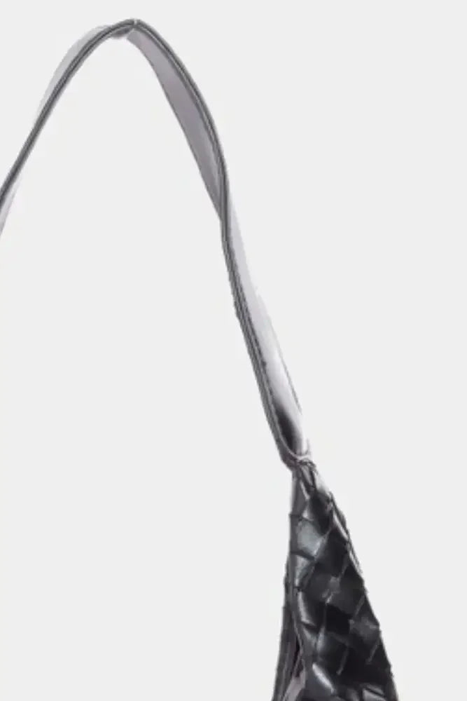 This elegant woven leather shoulder bag features an intricate braided pattern that showcases exceptional craftsmanship and attention to detail. Made from premium black leather with a sophisticated woven texture, this hobo-style bag offers both luxury and functionality. The spacious interior provides ample room for daily essentials while the comfortable single shoulder strap ensures easy carrying. The bag's slouchy silhouette and timeless black color make it perfect for both casual and formal occasions. The artisan-quality weaving technique creates a distinctive visual texture that sets this bag apart from ordinary shoulder bags, making it an ideal choice for fashion-conscious individuals who appreciate quality leather goods and unique design elements.