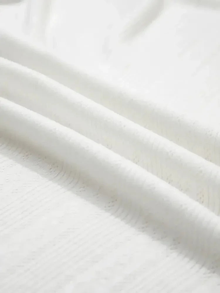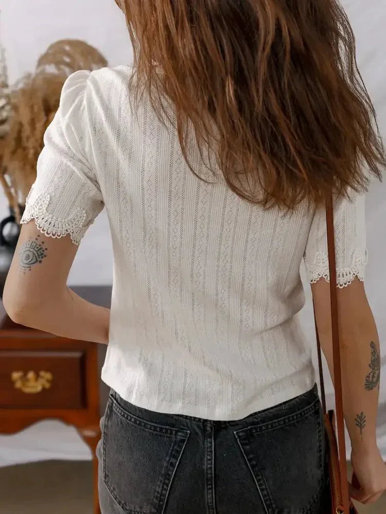 Scalloped Lace Trim Jacquard Textured T Shirt
