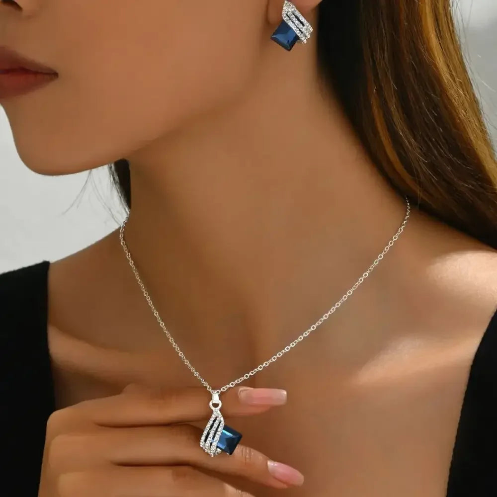 Stainless Steel Crystal Geometric Earrings and Necklace Jewelry Set