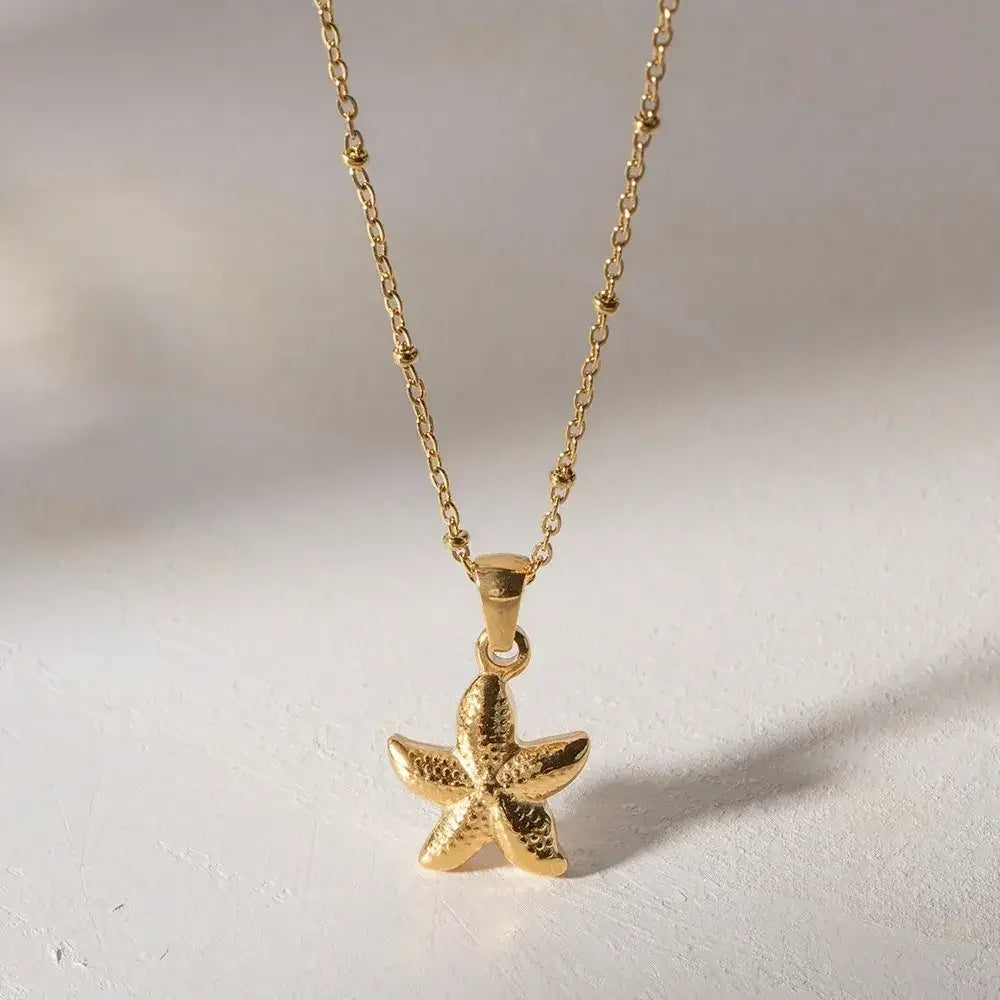 This stunning 18K Gold Plated Starfish Pendant Necklace features a beautifully crafted starfish charm that captures the essence of ocean elegance. Made with premium 18K gold plating over high-quality base metal, this necklace offers luxurious shine and durability. The delicate chain design makes it perfect for both standalone wear and layering with other jewelry pieces. The starfish pendant symbolizes renewal and healing, making it not only a fashionable accessory but also a meaningful piece. Hypoallergenic and tarnish-resistant, this necklace is designed for everyday comfort and long-lasting beauty. Perfect for women who appreciate ocean-inspired jewelry and sophisticated minimalist design.