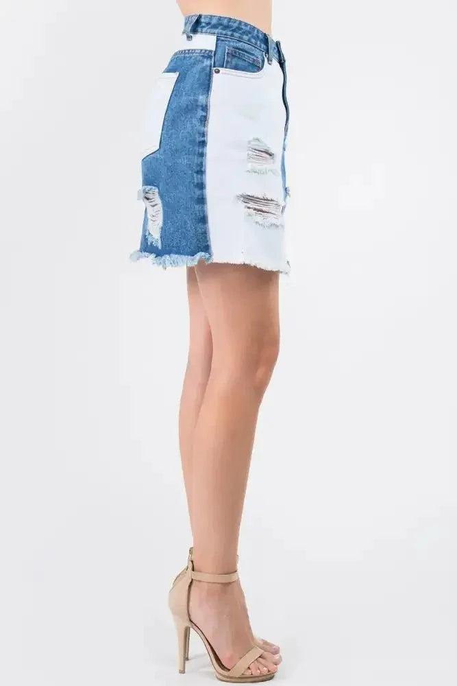 American Bazi Contrast Patched Frayed Denim Distressed Skirts - Update AvenueDenim Dresses & SkirtsTrendsi10010076644162710010076644162722934766 - bbfe - 48e3 - 9e4f - fa2a63ac7ce2 - MaxBlue/White