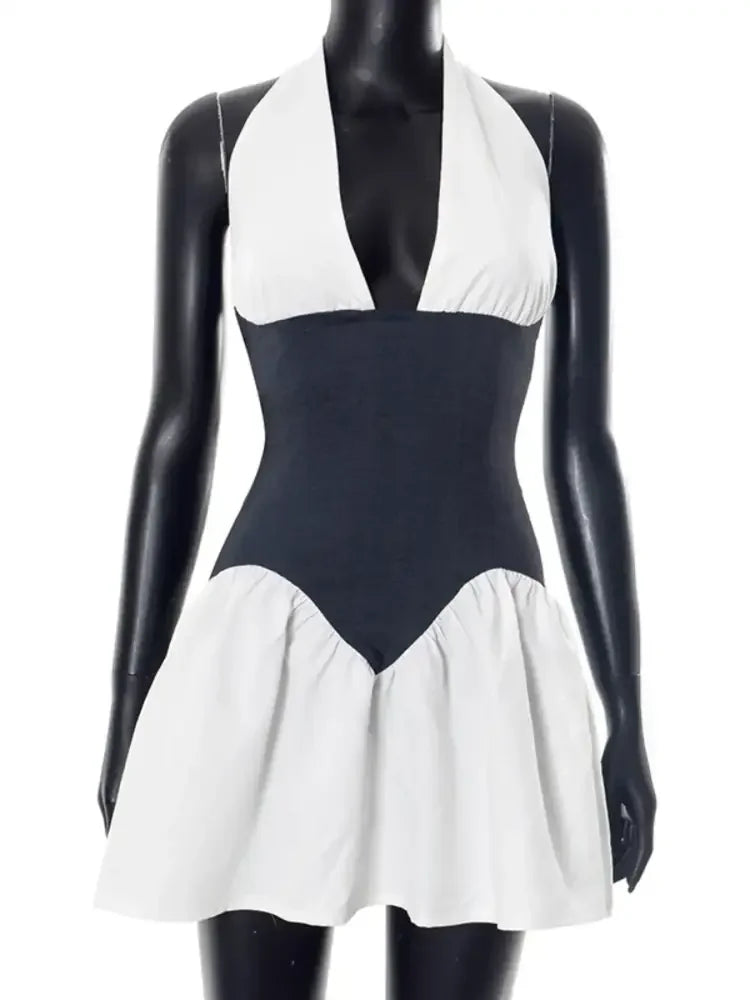 Color Block Halter Neck Dress