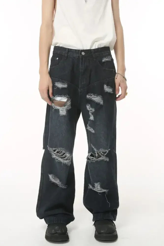 Distressed Wide Leg Pocketed Men's Jeans